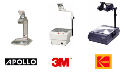 La gama de retroproyectores de transparencias, abarca varias marcas y modelos. Dentro de las marcas que podemos enunciar están 3M, Apollo, Kodak, entre otros. Se ofrecen alternativas ultra portátiles a equipos de sobremesa de elevada potencia, con cambiador de ampolletas, brazo